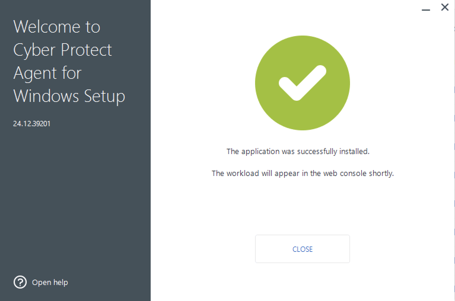 If you closed the installer before seeing the success message, but you still see it in the "Devices" list on the eSilo Cyber Protect Console, then it was registered successfully.